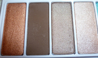 The left side of the palette houses the brown/neutral shades. There's one matte shadow here, Leather. I don't wear dark brown shadows much but when I do, I always reach for Leather. There's absolutely no red tones to it, It applies well & is really pigmented.